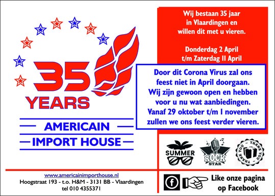 35 jaar feestje uitgesteld tot eind oktober.